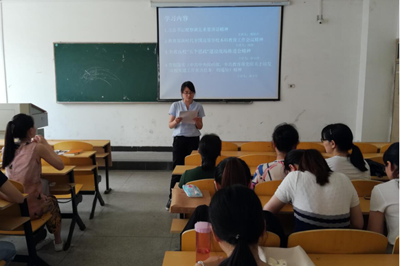 化工与材料工程系党总支7月4日14:30在3209召集全体教师举行纪念“七一”专题理论学习。本次专题学习既是为纪念中国共产党建党97周年,推进“两学一做”学习教育常态化制度化,又是落实学院思政会议精神,加强化材系本科教育质量和师德师风建设工作的重要会议。会议由化材系党总支副书记余老师主持。 会议上,余老师首先要求各教工党支部,认真学习贯彻落实《中共中央组织部、中共教育部党组关于印发〈高校党建工作重点任务〉的通知》精神,突出政治建设,以习近平新时代中国特色社会主义思想指导日常工作,对照20条重要任务,结合实际列出清单,落实教师党支部书记“双带头”作用,各支部书记要履行党建责任,推进党支部规范化建设,发挥凝心聚力的作用,把党支部建成学院党委和教师的连心桥,成为落实学院各项工作的战斗堡垒。 结合《学习全省高校“五个思政”建设现场推进会精神》一文和习近平总书记全国高校思政工作会到与北大师生座谈会重要讲话,要求各位教师严格遵守《高等学校教师职业道德规范》和湖北省高校教师“十倡导十禁止”师德行为规范,大力弘扬淡泊名利、廉洁从教,自觉提高教师的职业道德修养和廉洁自律的自觉性。严格执行学院《讲纪律守规矩十项规定》和各项管理制度,杜绝学术造假,争做“四有教师”,落实全员育人、全过程育人、全方位育人的“三全育人”理念。 对于学院各项教学改革,要求各支部书记(教研室主任)暑假专题组织全体教师认真学习《教育部新时代全国高等学校本科教育工作会议精神》,在系部的“双师型”教师培养和2017版人才培养方案有所创新。积极组织学生参加各种学科竞赛,为湖北建设培养应用型技能人才。克服形式主义,在系部形成风清气正的学风、教风,把立德树人做为一切工作的出发点。 ![]() ![]() 系党总支组织委员向丽(教学副主任)会议上交流学习“教育部新时代全国高等学校本科教育工作会议精神”心得体会,就师资队伍建设,教改和双创教育改革和各位教师进行了探讨。 ![]() 化材系第一党支部书记康顺吉表示学习“习总书记视察湖北重要讲话精神”使自己开拓了视野,了解了省情,对自己提高授课质量,科研申报都有积极帮助。化材系正在加强培养既有较高理论教学水平又有丰富工程实践经验的“双师型”教师队伍建设这项探索,促进应用型技能人才的培养是符合“习总书记视察湖北重要讲话精神”文中“加快创新强省建设,突出发展第一要务、激发创新第一动力、广聚人才第一资源,推动科技创新和经济社会发展深度融合。。。”文件精神。 ![]() 第三党支部书记孙安琪老师谈了学习“全省高校“五个思政”建设现场推进会精神”心得体会。全体教师统一认识到国势之强由于人,人材之成出于学,做为高校教师,一定要适应形势发展,落实学院思政工作会议精神,积极推进系部学生思政、教师思政、课程思政、学科思政、环境思政“五个思政”改革创新,加强师德师风建设,爱岗敬业,乐于奉献。 ![]() 最后,全体教师党员重温了“入党誓词”纪念中国共产党建党97周年,“不忘初心、牢记使命”做合格党员,在学院各项工作中发挥先锋模范作用。 (责任编辑:admin) |
