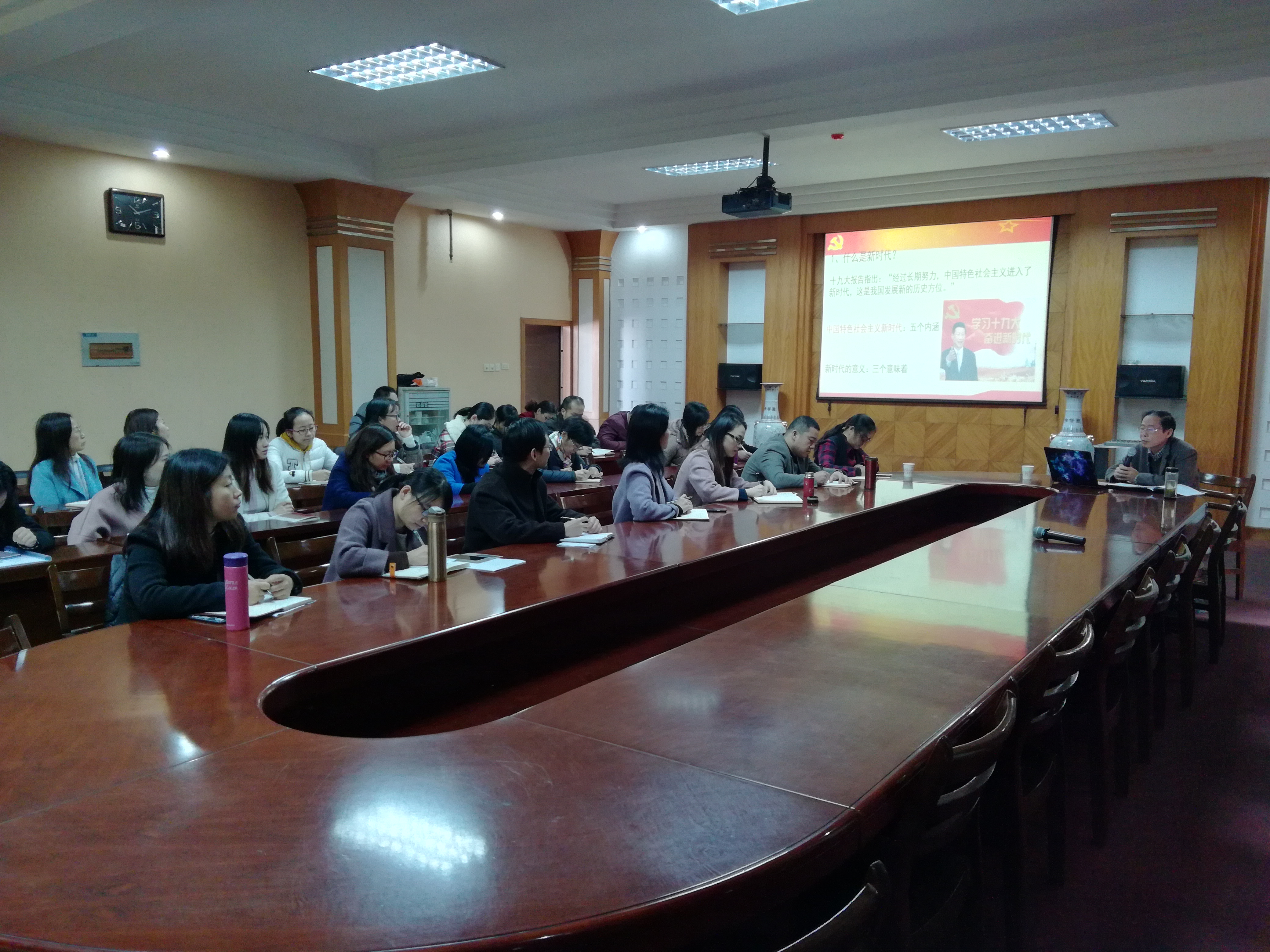 为深入学习习近平新时代中国特色社会主义思想和党的十九大精神,进一步推进“两学一做”学习教育常态化、制度化。围绕学院中心工作,化工与材料工程系党总支邀请院长丁一刚教授11月22日在9楼会议室进行《加强党的领导,促进新时代人才培养上台阶》专题党课讲座。机关第一、第三党支部部分党员一同听取了党课。