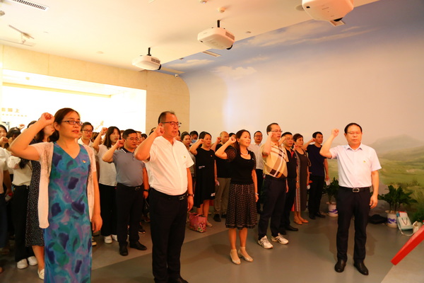 学院党委书记董光尚带领全体党员在党旗下重温入党誓词,铿锵恢宏的誓词,强烈震撼着在场的每一位党员,一字一句,神圣而豪迈,铮铮誓言,体现了党员同志们对中国共产党的无限忠诚,坚定了入党使命,奋斗初心。