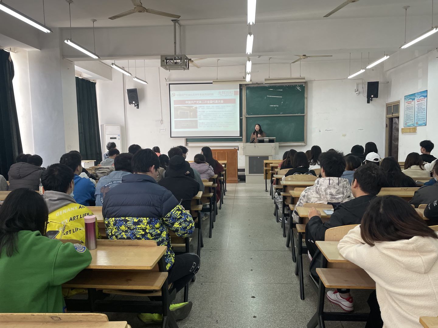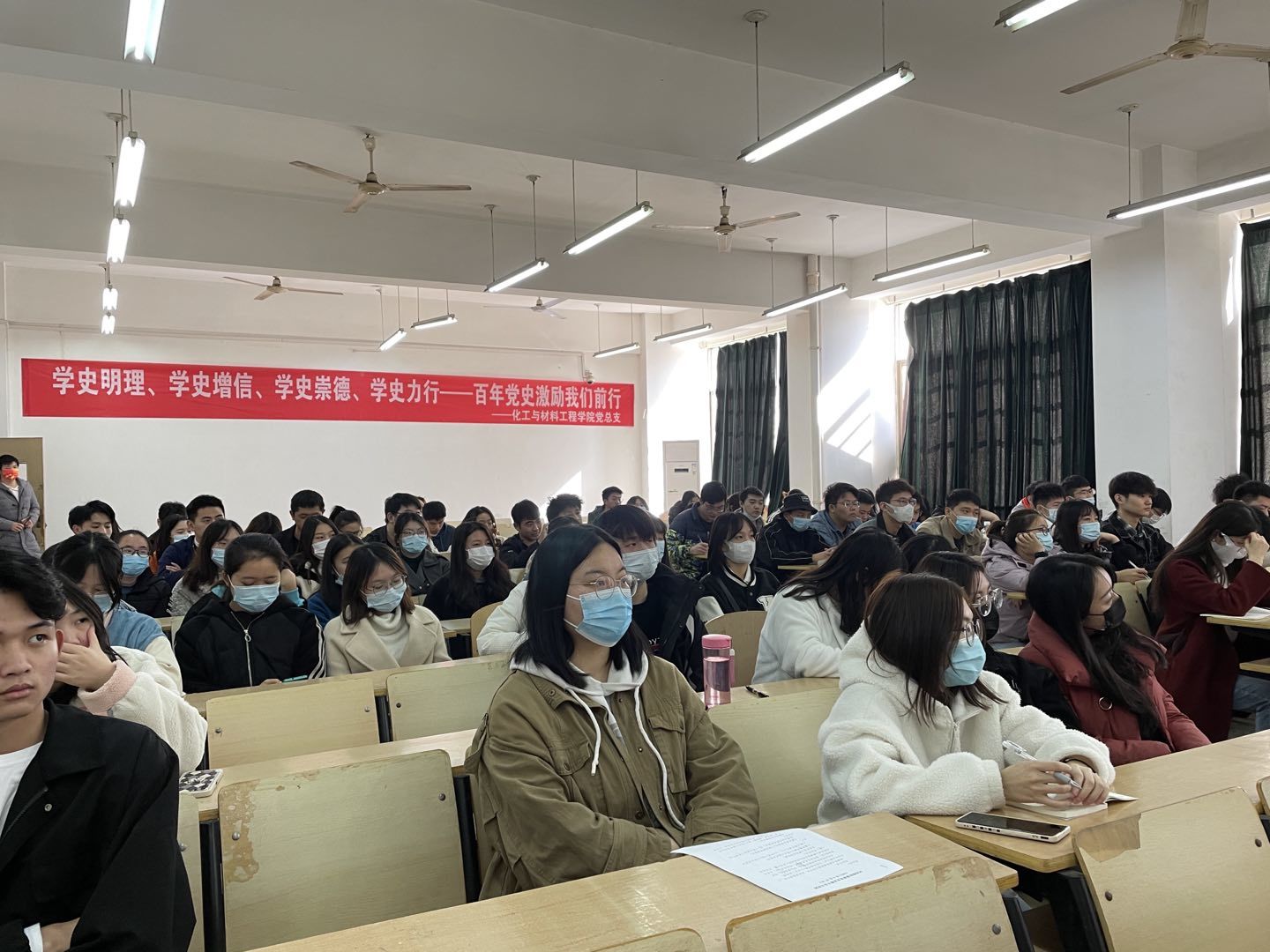 铭记百年党史,砥砺奋进前行。为庆祝中国共产党成立100周年,深入学习贯彻党的十八大以来习近平总书记关于学习党的历史重要论述,特别是在党史学习教育动员大会上的重要讲话精神,化材学院党总支开展党史学习教育系列活动。2021年4月15日,化材学院党总支开展纪念党的100周年党史学习教育动员大会。胡培书记以“中国共产党历史上重要会议”为题,为全院学生党员、预备党员、入党积极分子讲授党课。