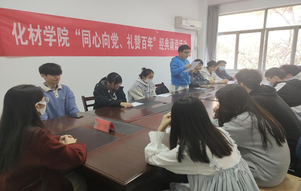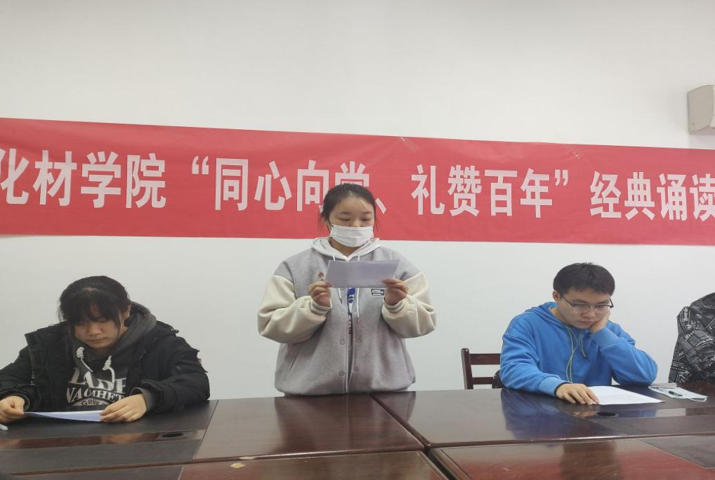 为深入落实党史学习教育活动,进一步加强对学生党员的教育管理,营造崇尚学习、重视学习、坚持学习的良好氛围,打造学习型党组织,引导党员做书香正能量的传播者、示范者。我院于2021年11月26日12点20分在三教3308党员之家开展以“同心向党 礼赞百年”经典诵读活动。本次活动由学院教师党员王一帆老师、党员、预备党员和入党积极分子代表参加。