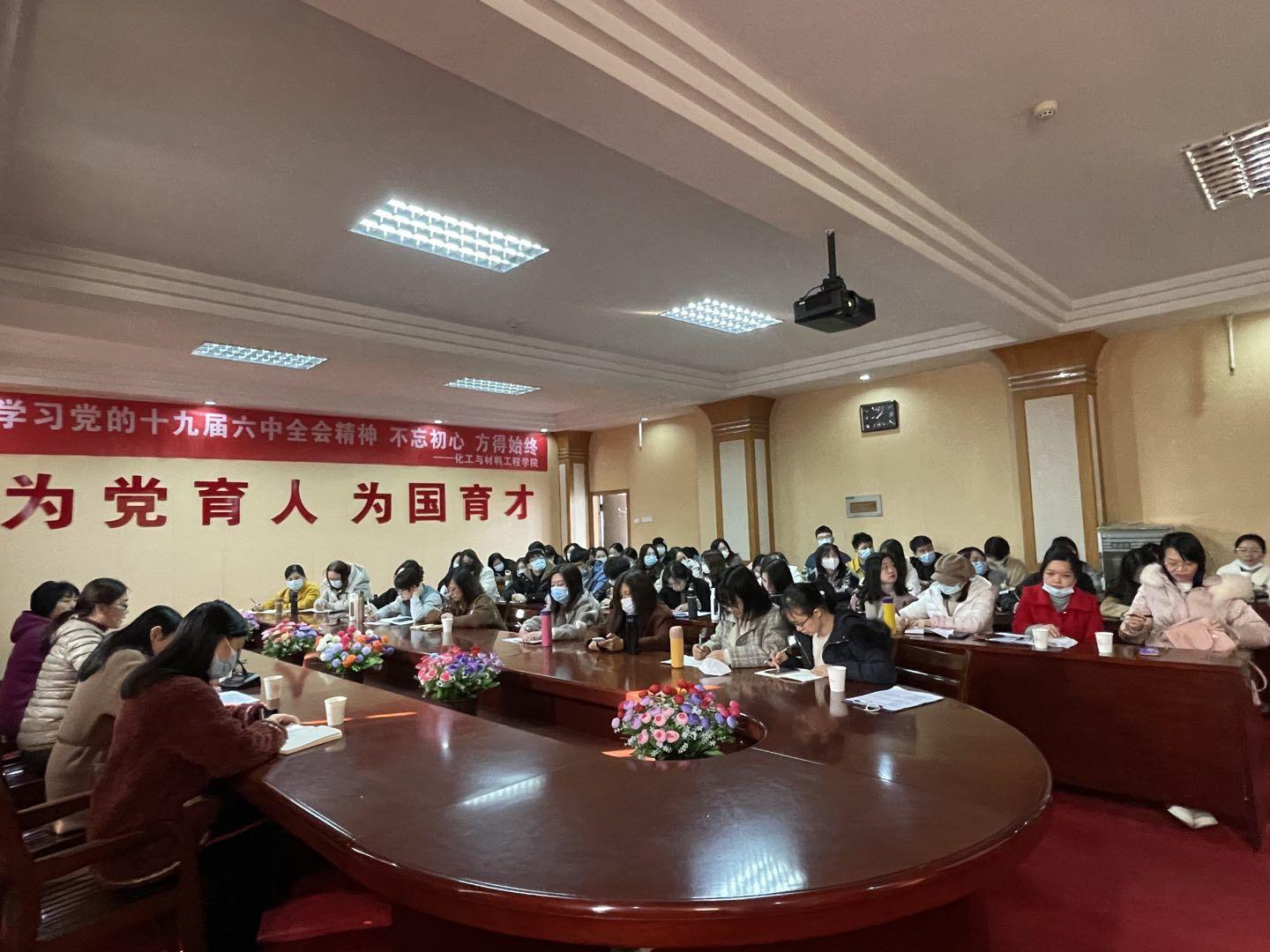 胡书记对欧阳院长的报告进行总结。欧阳院长的党课内容丰富,结合党史国史,联系当前国内外局势,重点从“回顾党百年奋斗历史、感悟百年党史、传承百年党史”三个方面,宣讲了党的十九届六中全会精神要点,为化材学院全院教职工和学生党员做了一场生动的报告。希望全院教职工以此次集中学习十九届六中全会为契机,利用党支部主题党日活动、读书会等活动,结合岗位职责,继续深入学习讨论。依托学习强国、青年大学习等平台,深入学习贯彻十六届六中全会精神,将自己的思想行动统一到全会精神上来,为学院建设发展稳定贡献自己一份力。
