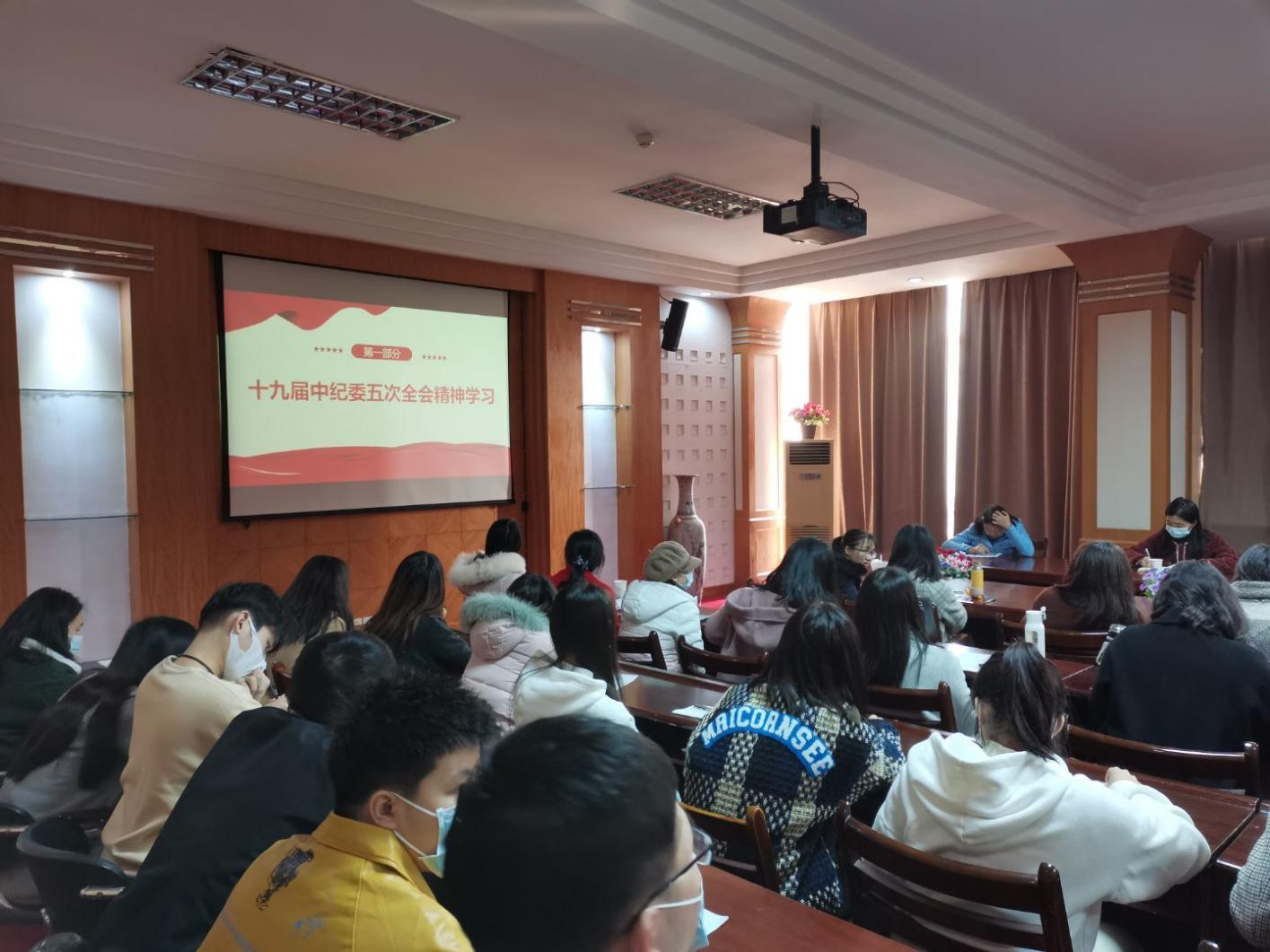 首先,胡书记领学了习近平总书记在十九届中纪委五次全会上的讲话精神学习。习近平总书记强调,要深入贯彻全面从严治党方针,充分发挥全面从严治党引领保障作用,确保“十四五”时期我国发展的目标任务落到实处。党的十八大以来,尽管党风廉政建设和反腐败斗争取得了历史性成就,但形势依然严峻复杂。必须清醒看到,腐败这个党执政的最大风险仍然存在,存量还未清底,增量仍有发生。政治问题和经济问题交织,威胁党和国家政治安全。腐败问题和不正之风交织,“四风”成为腐败滋长的温床。习近平指出,党风廉政建设永远在路上,反腐败斗争永远在路上。各级领导干部特别是主要负责同志必须切实担负起管党治党政治责任,始终保持“赶考”的清醒,保持对“腐蚀”的警觉,把严的主基调长期坚持下去。