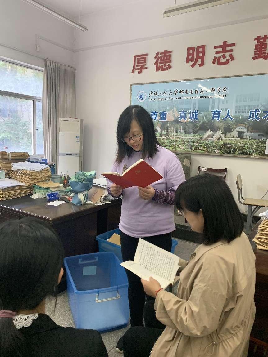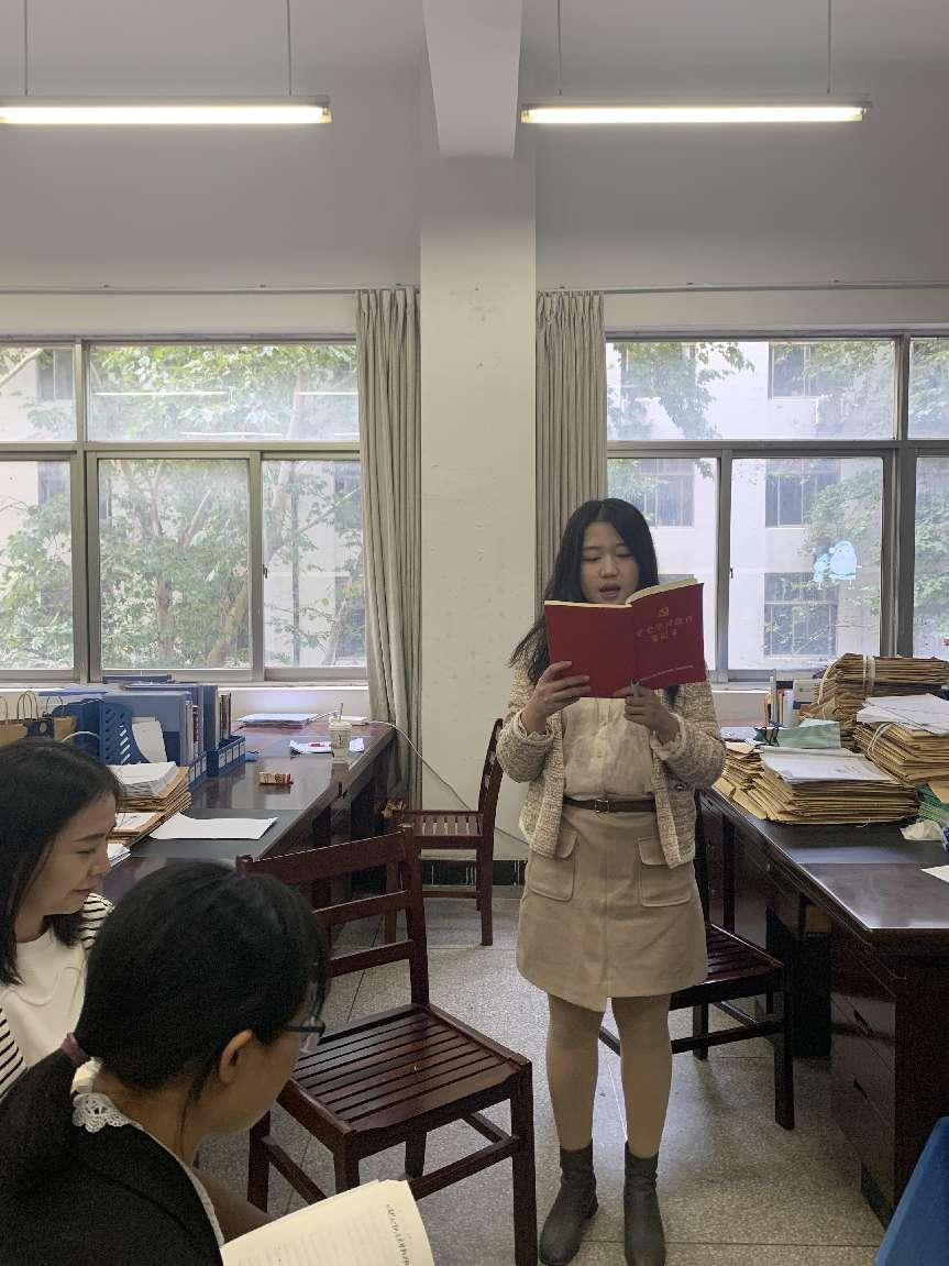 (通讯员 魏端丽) 2022年10月19日化材学院第二党支部在3303办公室集中进行了10月主题党日的学习活动,第二党支部全体党员参加了学习活动。本期围绕学习习近平总书记代表第十九届中央委员会向中国共产党第二十次全国代表大会作的报告;学习习近平总书记重要文章《坚持人民至上》;学习习近平总书记重要文章《新时代中国共产党的历史使命》;学习中央和省委统战工作、民族工作、宗教工作会议精神进行学习。支部党员在学习活动开始前,集中奏唱了国歌,并在领誓人魏端丽老师的带领下,重温了入党誓词。![]() ![]() 领学人为魏端丽老师,魏端丽老师首先以领读的方式开展了党章学习。随后,第二党支部全体党员教师逐一对上述学习内容进行了交流发言。发言人为王颖、杨玲玲、胡静璇、余冲、唐婧和刘雪梅。 ![]() 王颖老师说通过学习中央和省委统战工作、民族工作、宗教工作会议精神,明白了只有铸牢中华民族共同体意识,才能推动各项事业顺利发展。杨玲玲老师说要坚持科技是第一生产力,人才是第一资源,创新是第一动力,深入实施科教兴国战略,人才强国战略,创新驱动发展战略。胡静璇老师说我们党始终代表着广大人民群众的利益,始终把人民利益放在最高位置,正是这样,才能团结带领广大人民战胜一切困难险阻、不断从胜利走向胜利。余冲说通过学习中国共产党新时代的历史使命,我们必须进行具有许多新的历史特点的伟大斗争。唐婧老师说新时代中国共产党的历史使命,是继续推进实现中华民族伟大复兴。刘雪梅老师说在这样一个“特殊”历史关头,总书记再次强调人民至上这一执政理念,彰显了我们党对人民始终不变的赤诚深情,有着极其特殊的深意。 ![]() ![]() ![]() ![]() 通过本次主题党日活动,本支部党员全面而又充分的学习了中国共产党第二十次全国代表大会精神,领悟了新时代背景下中国共产党的历史新使命,明确了人民至上的坚定信念,端正了高校教师育人的思想作风。 (责任编辑:admin) |