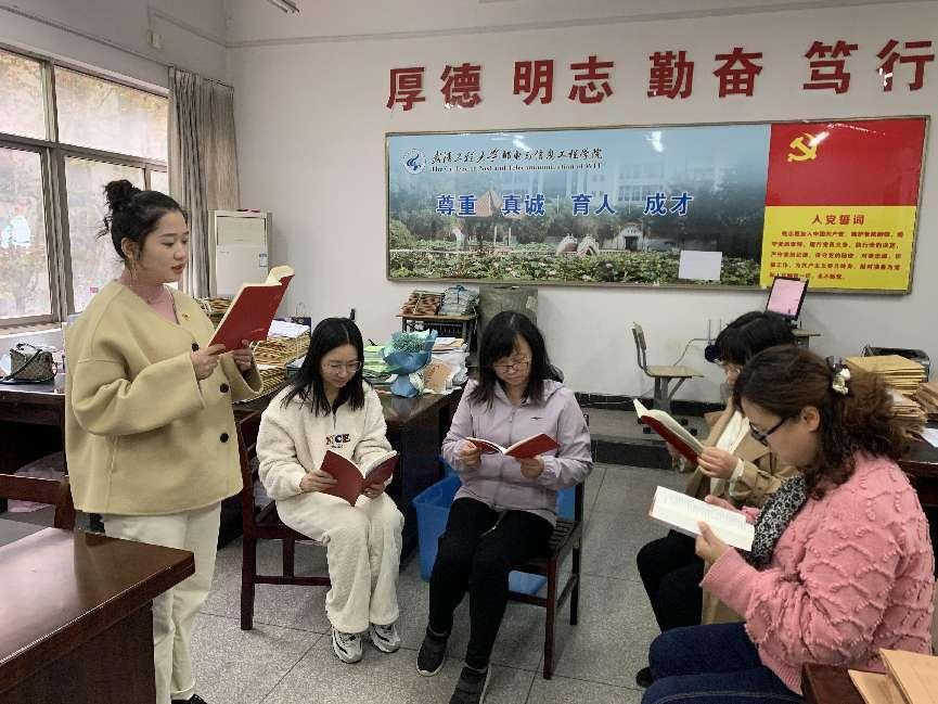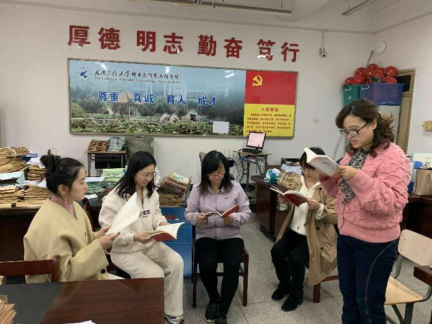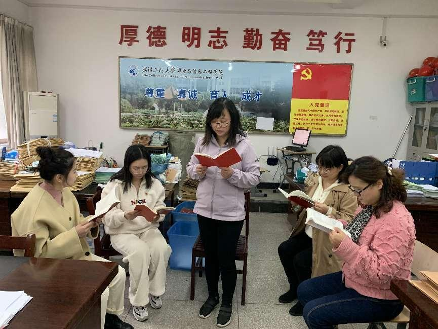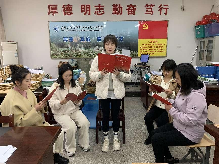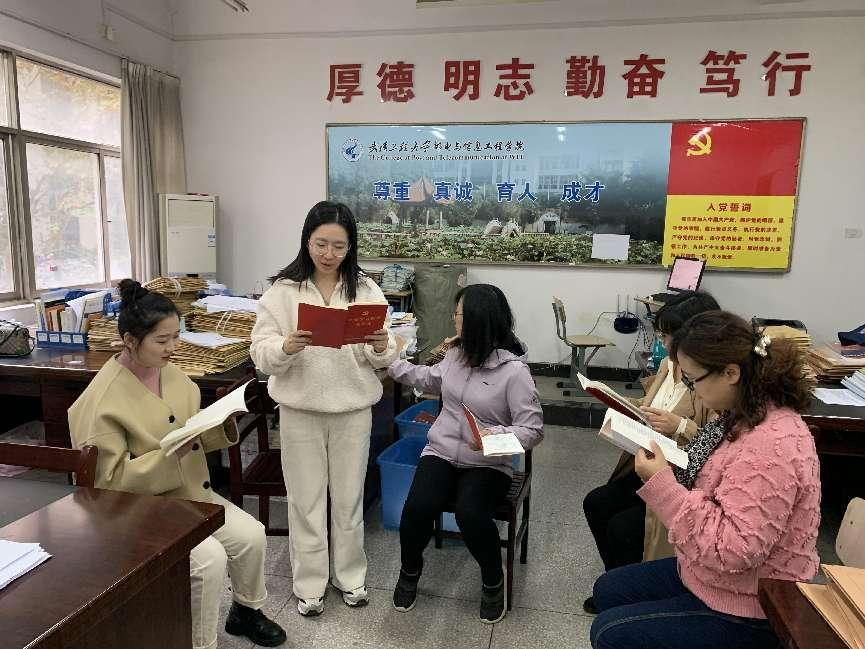(通讯员 魏端丽) 2022年11月16日304永利集团第二党支部在高分子材料与成型教研室集中进行了11月主题党日的学习活动。主要学习内容为:学习党的二十大精神;学习《中国共产党章程(2022年修改)》;学习习近平总书记在中共中央政治局第一次集体学习时的重要讲话精神;学习习近平总书记在瞻仰延安革命纪念地时的重要讲话精神;学习《中共中央关于认真学习宣传贯彻党的二十大精神的决定》;学习省委书记王蒙徽同志在学习贯彻党的二十大精神中央宣讲团湖北报告会上的宣讲报告;学习《党徽党旗条例》。教工第二党支部全体党员参加了学习活动。 领学人为魏端丽老师,魏端丽老师首先带领支部党员在活动开始前集中奏唱了国歌,并重温了入党誓词。随后,组织领学了党的二十大精神。强调了作为青年教师,要时刻保持头脑清醒,深刻认识体会到肩上的责任无比重大,身负的使命无上光荣,要以高度的思想自觉和行动自觉做到对党忠诚,坚定不移听党话、跟党走。 ![]() 然后,第二党支部全体党员教师逐一对上述学习内容进行了交流发言。发言人为刘雪梅、杨玲玲、胡静璇、余冲、唐婧和王颖。 刘雪梅老师说根据形势和任务的发展变化对党章进行修改有利于更好发挥党章的规范和指导作用。杨玲玲老师说作为一名中国共产党员,要紧跟党的脚步,执行党的政策,在自己的本职工作做好自己的事情,要理论联系实际,不断学习,不断完善自我。胡静璇老师说我们要坚决落实党中央决策部署,把老一辈革命家开创的伟大事业继续推向前进。余冲老师说我们要坚定中国特色社会主义道路自信、理论自信、制度自信、文化自信,坚持道不变、志不改,确保党和国家事业始终沿着正确方向胜利前进。唐婧老师说党的二十大担负起了全党的重托和人民的期待,科学谋划了未来一个时期党和国家事业发展的目标任务和大政方针,具有重大而深远的意义。王颖老师说在日常工作生活中我们必须严格履行并监督党徽党旗的使用管理规范,也应严格对照《条例》规定,不作任何违反《条例》的行为,坚决维护党徽党旗的尊严。 ![]() ![]() ![]() ![]() 通过本次主题党日活动,本支部党员全面而又深刻的学习了党的二十大精神,明确了新时代的发展目标,端正了党员的思想作风。 (责任编辑:admin) |