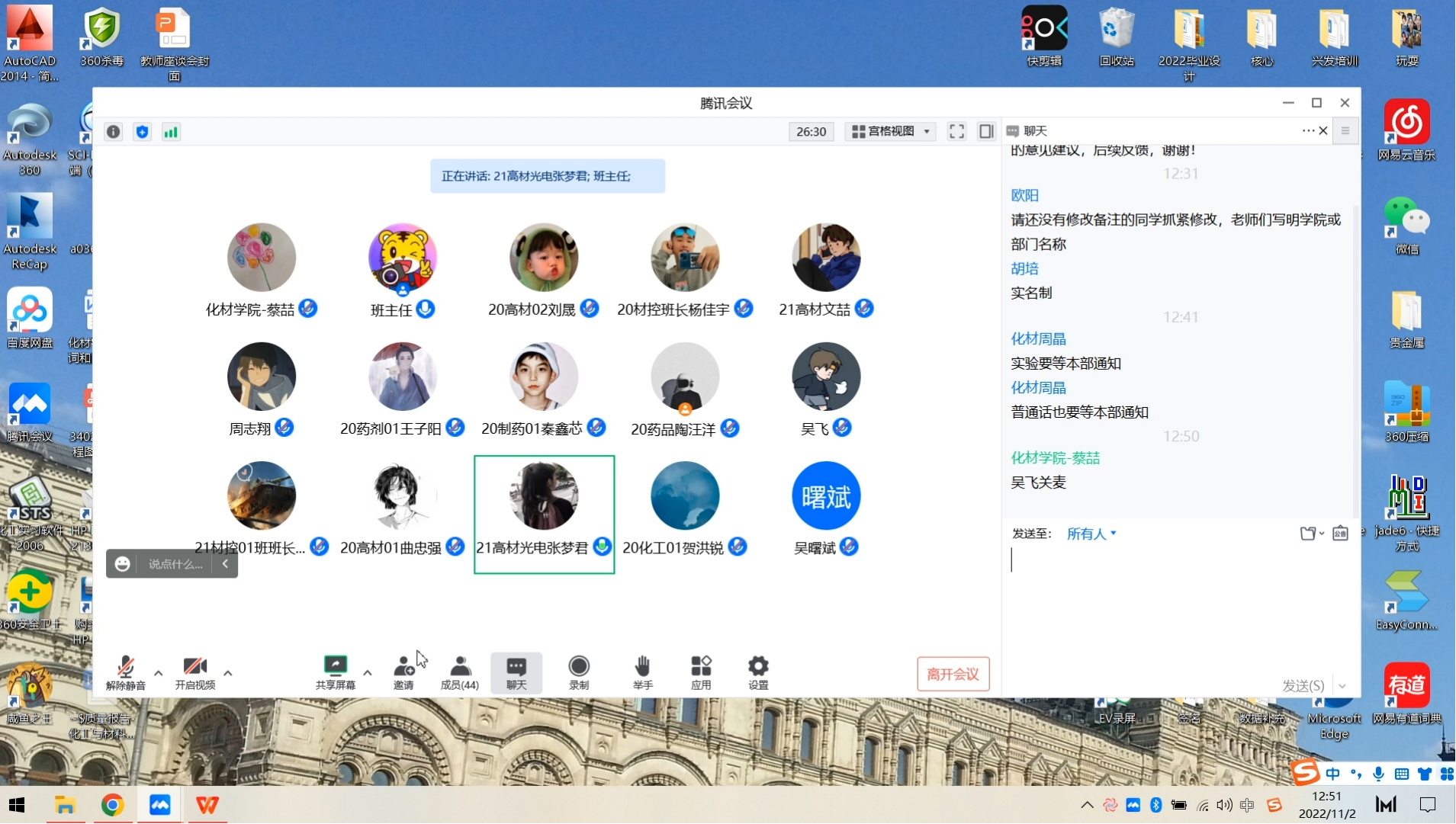 为了保证教学工作的顺利开展和教学秩序的正常运行,及时发现、改进教学工作中存在的问题,积极搭建师生沟通桥梁和平台,促进师生之间的交流与沟通,2022年11月2日12:30,304永利集团(以下称化材学院)举办线上期中座谈会。学院副院长欧阳琼、院长刘少文、教务部关继佳主任、化材学院副院长(主持工作)向丽、副院长蔡喆、党总支书记胡培、党总支副书记彭晶、辅导员及各年级各班学生代表参加了此次座谈会。 会议伊始,彭书记提出,本次会议主要是针对本学期的教学工作及平时生活的意见反馈,学院每学期都会召开此次期中会议,也希望各班代表能够积极反馈大家所收集的问题,老师们将会根据大家所提出的问题进行沟通与解答。 ![]() 化材学院开展此次期中考座谈会,让老师们能够更了解同学们的学习情况,与同学们交流,倾听学生最真实的声音,及时掌握和了解学生的思想动态、学业困惑等问题,进一步帮助新生尽快适应大学学习和生活,同时了解新老生近期思想动态、学习情况,促进师生沟通交流,师生相聚一堂,共同交流近半个学期以来的学习情况。 ![]() ![]() 欧阳院长表示,同学们提出的问题和建议,学院一定会高度重视,并积极向学校有关部门反馈,逐一研究落实。同时,她建议同学们要学会自我学习、自我管理,提高学习主动性,在学习上投入更多的时间和精力,不断提高分析问题、独立思考、解决问题以及自主学习的能力。 ![]() 本次座谈会,进一步加强了学院与学生之间的沟通交流,促进了良好的学风建设,对不断提升教学管理水平、提高人才培养质量起到了积极作用,为学院的良好发展奠定了基础。 (责任编辑:admin) |
