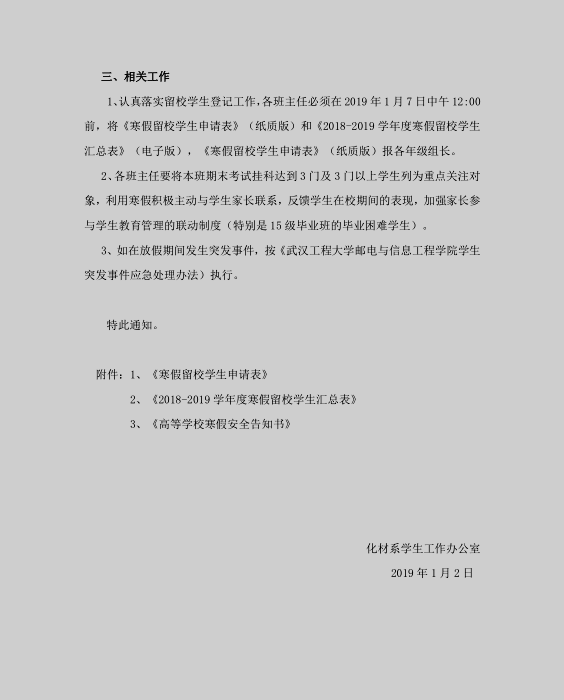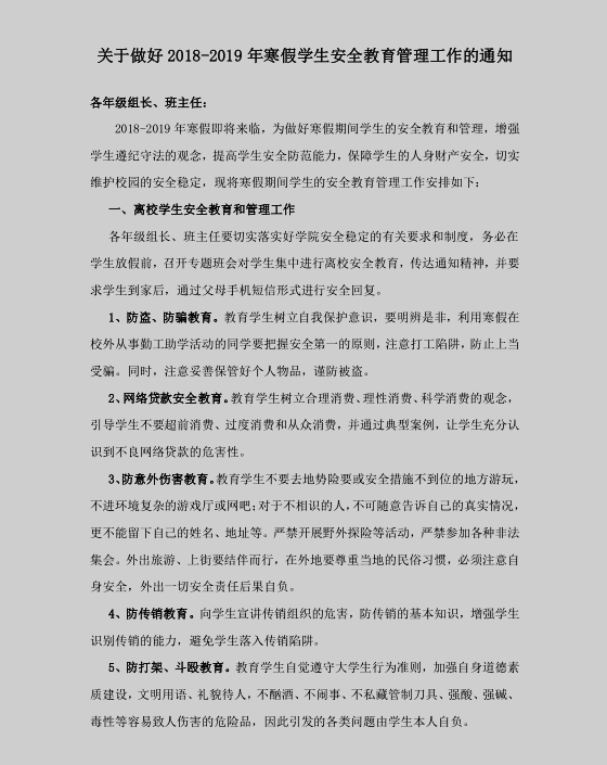 关于做好2018-2019年寒假学生安全教育管理工作的通知