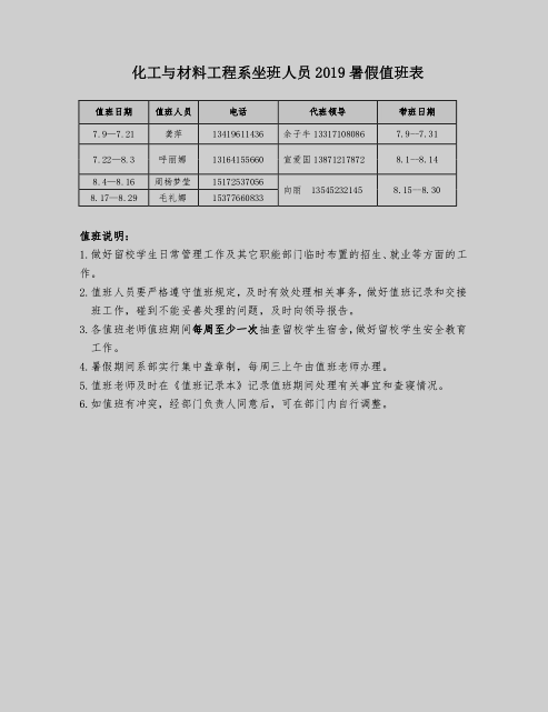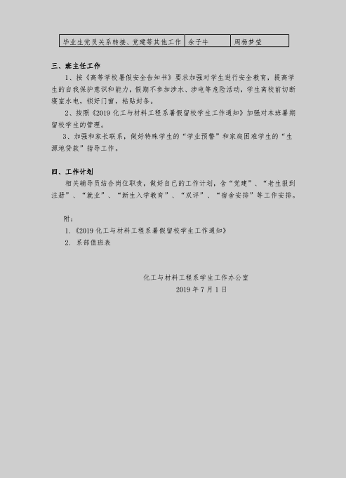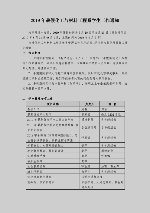 2019年暑假化工与材料工程系学生工作通知