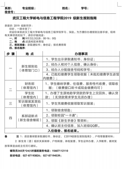 永利集团3042019级新生报到指南