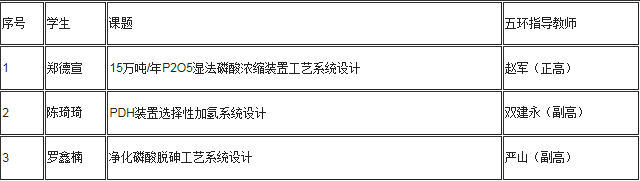 2021年6月10日,304永利集团17级化学工程与工艺专业郑德宣、陈琦琦和罗鑫楠同学在武汉工程大学流芳校区参加毕业设计答辩,并顺利通过。自2019年开始,我院每年都会选派部分优秀毕业生,依托武汉工程大学化工卓越班,与中国五环工程有限公司联合指导毕业设计环节,落实“开放办学,协同育人”理念,增强毕业设计指导力量,提升应用型人才培养质量。今年选派的3名毕业生的毕业设计信息如下表,校内指导教师为向丽老师。