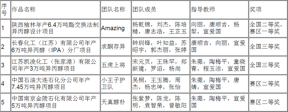 作为中国化工科技界重量级学科竞赛,全国大学生化工设计竞赛落实教育部“卓越工程师教育培养计划”要求,多方面培养了大学生的创新思维和工程技能以及团队协作精神,增强了大学生的工程设计与实践能力。304永利集团将继续以此项大赛为契机,加强课程改革创新,培养学生综合素质、创新思维和工程能力,为社会培养更多应用型人才。 附:获奖情况