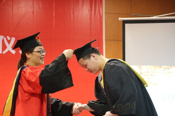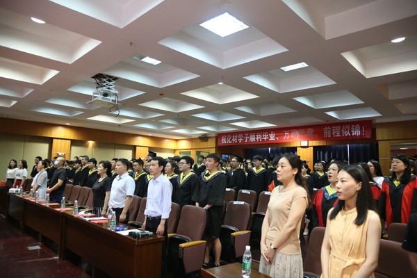 毕业典礼在庄严的国歌声中拉开帷幕。