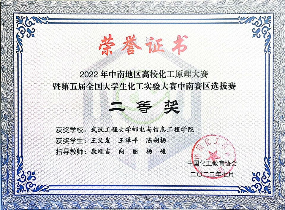 (通讯员 康顺吉)2022年8月,由中国化工教育协会主办、四川大学承办的“欧倍尔·东方仿真”杯第五届全国大学生化工实验大赛顺利闭幕。304永利集团2020级化学工程与工艺专业学生王义发、王泽平和陈胡杨组建的团队获中南赛区二等奖。 本届大赛以“启航——化学工程师”为主题,竞赛设华东、华北、东北、中南、西南和西北6个赛区,中南赛区包括河南、湖北、湖南、福建、广东和海南六省,报名高校有70所。大赛主要考核包括化工原理理论测试、化工单元仿真操作和化工原理实验操作三个部分,旨在推动高等学校化工类专业“新工科”建设,提高本科化工类专业核心课程教学质量,加强大学生综合素质与能力素养,提升高等教育服务石油和化工行业发展水平。 ![]()