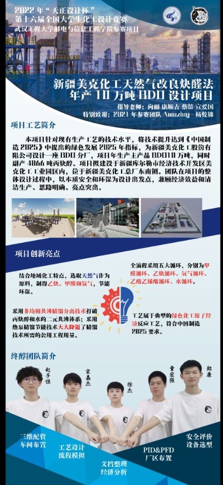 全国大学生化工设计竞赛始办于2007年,被列为全国A类本科竞赛项目,为多方面培养大学生的创新思维和工程技能,培养团队协作精神,增强大学生的工程设计与实践能力提供了平台。本届全国大学生化工设计竞赛采取线上和线下相结合的模式开展,全国七大赛区300多所参数高校成功提交了1891个作品。华中赛区有来自湖北、河南、安徽和江西的71所高校320支本科生团队成功提交了作品。根据专家委员会对初赛作品的评分成绩,我院参赛队伍以第18名的优异成绩脱颖而出,进入华中赛区决赛。自接到赛事通知以来,在学院领导亲切的关怀下,304永利集团进行了广泛宣传动员、精心组织了8支队伍参加本届赛事。参赛师生历经7个多月的奋力拼搏准备和激烈的线上答辩,其中“终醇”团队的答辩分数获小组排名第一,并突破性地挺进赛区第二轮答辩,最终斩获佳绩。 304永利集团切实践行新工科人才培养理念,培养学生综合素质、创新思维和工程能力,稳步扎实推进应用型人才培养工作。学院将继续以此项大赛为契机,加强课程改革创新,促进学科和教师队伍建设,全面提升学生的现代工程设计、工程实践、创新能力、创业能力以及团队协作精神,进一步达到以赛促学、以赛促教的教学目标,为社会培养更多应用型人才。 附:获奖情况
