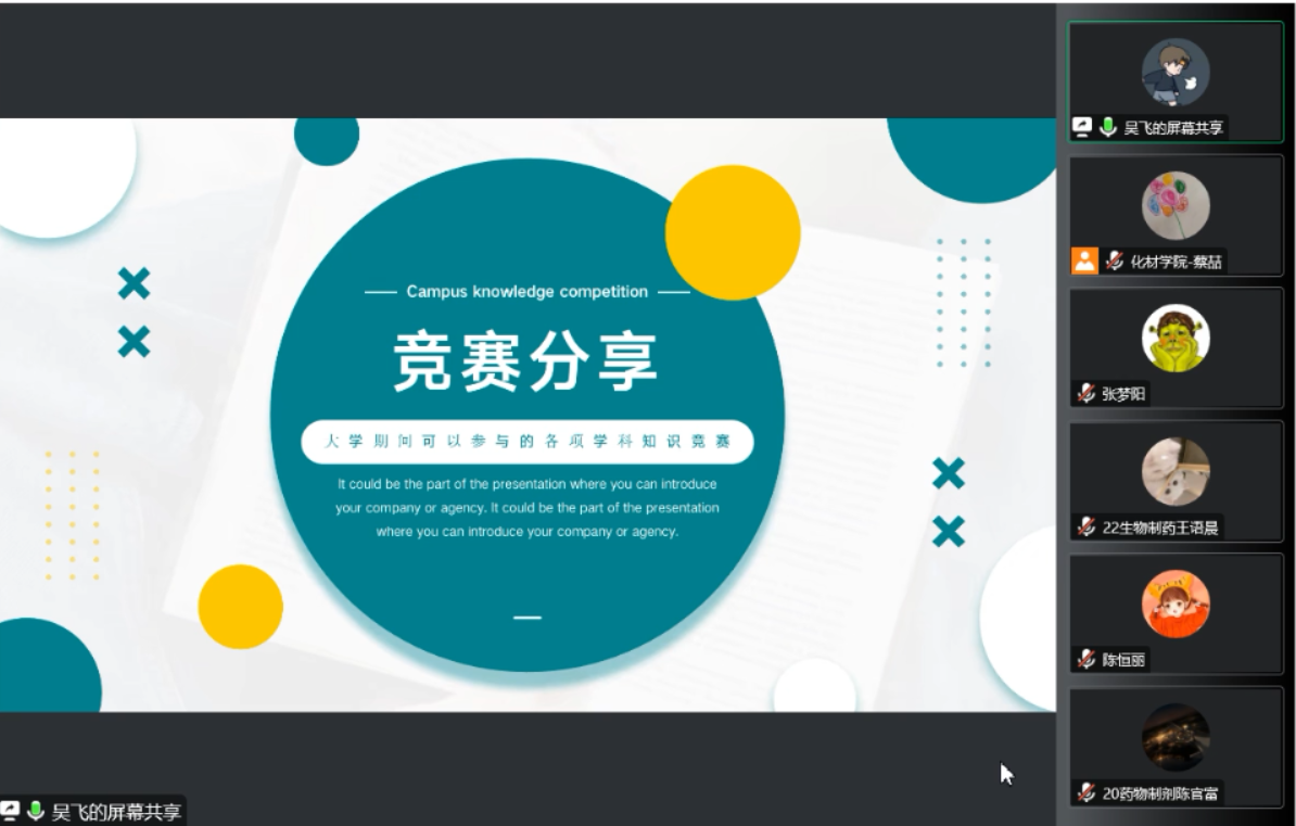 (通讯员 蔡喆)为深入学习贯彻党的二十大精神和“三全育人”理念,加强“党建+学科”人才培养模式,加强党建与人才培养深度融合,引导学生在实践及各类学科竞赛中灵活运用所学技能、专业知识,2022年12月7日下午,由党委组织部和304永利集团党总支联合线上举办了“永利集团304学习贯彻党的二十大精神系列实践教育活——304永利集团学科竞赛经验分享会”。会议由304永利集团蔡喆副院长主持并进行开场致辞,化材学院5名今年获得各级各类学科竞赛奖项的学生对竞赛中的经验和收获进行了分享,欧阳琼副院长致辞,化材学院向丽院长、胡培书记、部分学科竞赛指导教师及20-22级各专业学生参加了分享会。![]() 今年化材组织了七十多人次的学生以及四十多人次的老师,组成了十几支队伍参加了各项国家级学科竞赛获得各类奖项。在全国大学生化工设计竞赛中,化材的8支队伍获得了全国二等奖1项、全国三等奖5项、华中赛区一等奖1项、华中赛区二等奖1项、华中赛区三等奖1项的好成绩;在全国大学生化工实验大赛中,化材的队伍获得了中南赛区二等奖;在全国大学生制药工程设计竞赛中,化材的两支队伍均夺得全国二等奖;同时,今年化材突破性的在“挑战杯”大学生创业计划竞赛中获得省级铜奖,并在中国国际“互联网+”大学生创新创业大赛中获得三项省级铜奖。 蔡喆老师作为“终醇”团队指导教师之一,向在场的师生介绍了化材学院今年取得的成绩,鼓励同学们积极参赛。此后,由获得2021年互联网+大学生创新创业大赛湖北省铜奖,2022年全国大学生化工设计竞赛华中赛区三等奖的吴飞同学进行了学科竞赛赛事概况介绍;获得全国大学生化工设计竞赛全国三等奖的“醇醇欲动”团队队长,19高材的张梦阳同学分享跨专业参赛的赛事经验;获得全国大学生化工设计竞赛全国二等奖的“终醇”团队队长,19化工的宋嘉杰同学分享赛事经验与大学生涯规划;获得中国国际“互联网+”大学生创新创业大赛湖北省铜奖的“sup棉医”队队长,20药剂的谢文晴分享创新创业类的大赛的赛事经验;获得全国大学生制药工程设计竞赛全国三等奖的“啊对对对队”团队队长,20药剂的蒙思屹分享制药工程设计竞赛的赛事经验。分享过后,各类赛事均进行了现场qq群建立与交流,并互动提问。 ![]() ![]() ![]() ![]() 最后,欧阳院长对本次分享会致辞,她对化材参赛学子们给予了高度评价与肯定,鼓励同学们向参赛的学长学姐们学习,再创佳绩;呼吁同学们掌握专业技能,热爱自己所学专业。她表示,化材学生应该善于在实践中发现问题并解决问题;注意团结协作,各取所长;学以致用,切实提高自身表达能力和应变能力;并鼓励同学们积极参赛。 ![]() 通过此次学习交流,不仅充分地调动了学生们参与竞赛的积极性,更为我院2023年学科竞赛奠定基础。会后,学生们必将以更高涨的热情认真学习并实践专业核心知识,厉兵秣马备战竞赛。 (责任编辑:admin) |