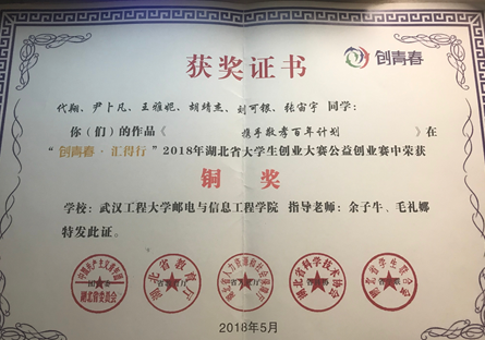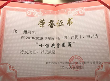 代翔——化工与材料工程系16高材02班组织委员,曾任系部学生会主席,2018弘毅支教团团长。 【团学工作篇】 代翔自入学以来学习刻苦,思想进步,积极向党组织靠拢。作为学生干部认真负责,积极响应学院团委号召组织学生会成员开展各类校园文体活动,在参与活动中带头以身作则,为学生组织成员提供了很好的榜样力量,期间作为我院学代表参加武汉工程大学第四次学代表大会。曾荣获”十佳共青团员“”十佳青年志愿者““优秀共青团干””优秀学生干部“”团学先进工作者”“乙等奖学金”等多项荣誉。 ![]() ![]() 【社会实践篇】 作为2018年弘毅支教团团长响应共青团中央暑期”三下乡“——扶贫攻坚专项的号召,组建团队共6人由湖北武汉前往贵州思南开展为期一个月的暑期社会实践活动。实践期间,代翔主要负责与当地政府等机关领导联系,做好实践纪实与外界沟通工作,期间照顾团队成员起居、任务安排及安全问题并负责团队的思想品德教学任务。期间有多篇关于实践的文章在新华社、中国青年网、多彩贵州、思南县共青团委公众号上刊登,在社会各界引起了广泛响应。思南电视台也对他们的团队进行了专门采访并在晚间新闻进行了联播报道。返校后带领团队在我院荣获暑期社会实践“一等奖”,弘毅支教团的实践事迹受湖北团省委表彰授予湖北省暑期三下乡”优秀实践团队“荣誉称号。 ![]() ![]() ![]() 【创新创业篇】 2018年5月代翔做为主力选手在余子牛老师和毛礼娜老师的指导下凭借作品《携手敬孝百年计划》荣获湖北省大学生创新创业大赛公益创业赛“铜奖”的好成绩。参赛团队于18年三月份组队磨合,历经2个月的努力,通过提出并确定创新方案、实际设计、提交作品、作品评审等多个环节,与其他高校同台竞技、激烈角逐,最终取得佳绩。 ![]() ![]() (责任编辑:admin) |