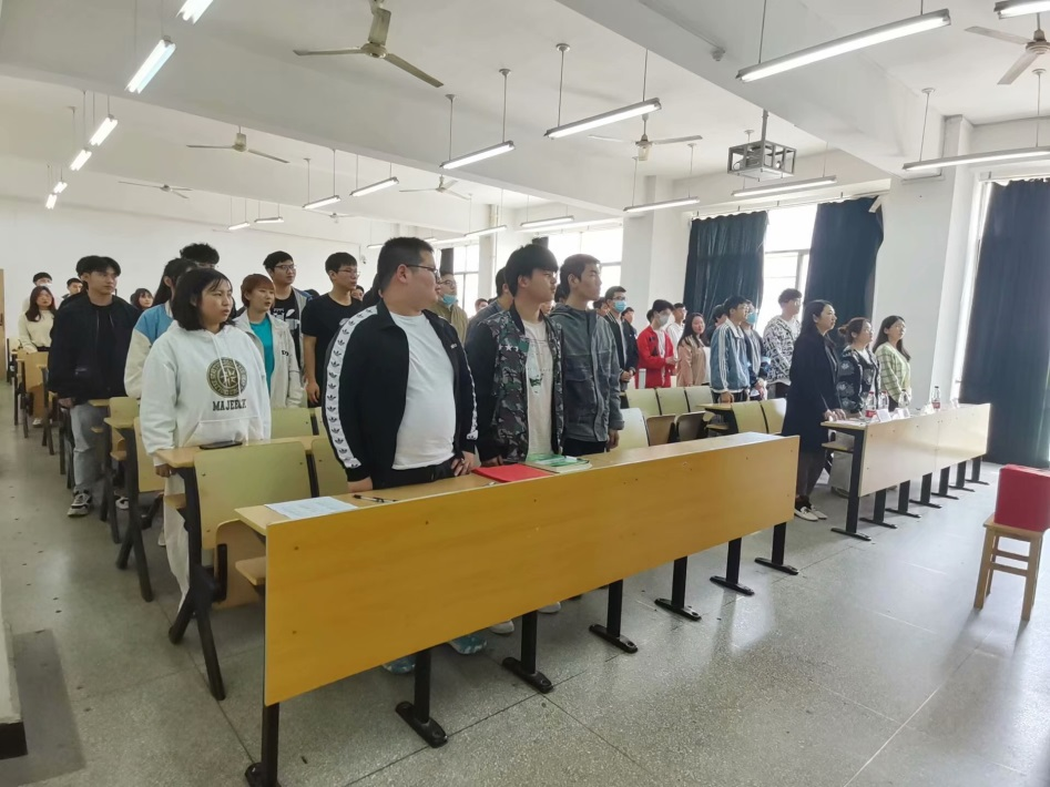 学生陆续到场后,主持人代表化材学院对参加大会的青年代表们表示热烈欢迎,紧接着,国歌响起,全体起立,会议在庄严的国歌声中拉开帷幕。