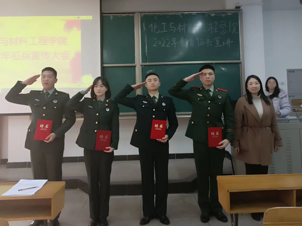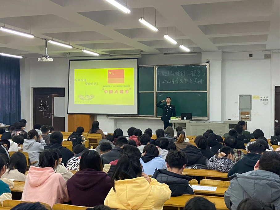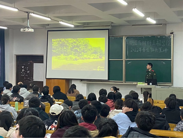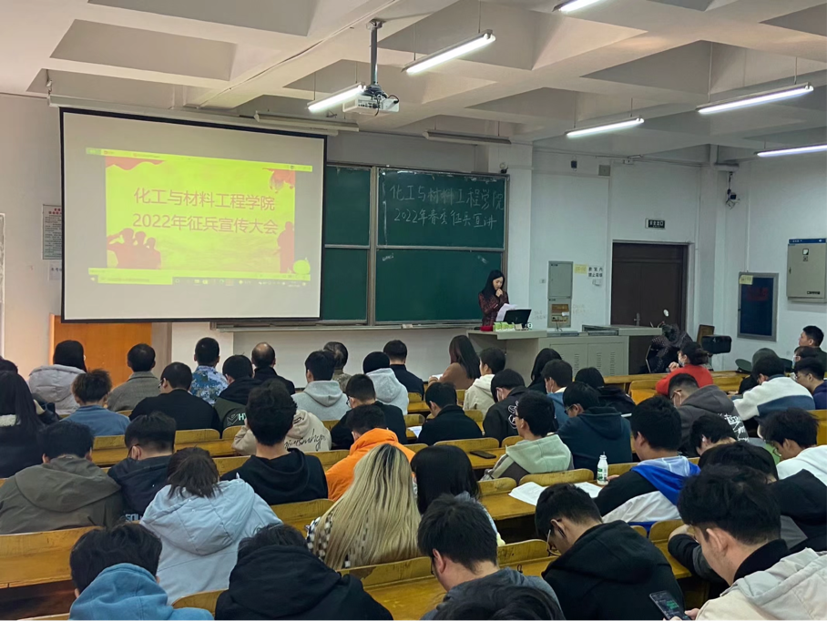 为了充分调动我院学生入伍的积极性,激发我院学子保家卫国的热血情怀,304永利集团于2021年12月9日15时在3001教室举行“请党放心,强国有我”2022届春季征兵宣传动员会。黄陂区武装部政委郭遵毅,学院副书记、副院长田艺,学生工作部田文明,武装部李承亮、朱扬帆老师现场观摩了动员大会。化材学院党总支书记胡培、副书记彭晶,化材学院团总支书记郭咪咪、毕业年级辅导员王一帆以及学院退伍士兵、各年级有意向征兵入伍的同学参加了此次动员大会。本次大会由王一帆老师主持。