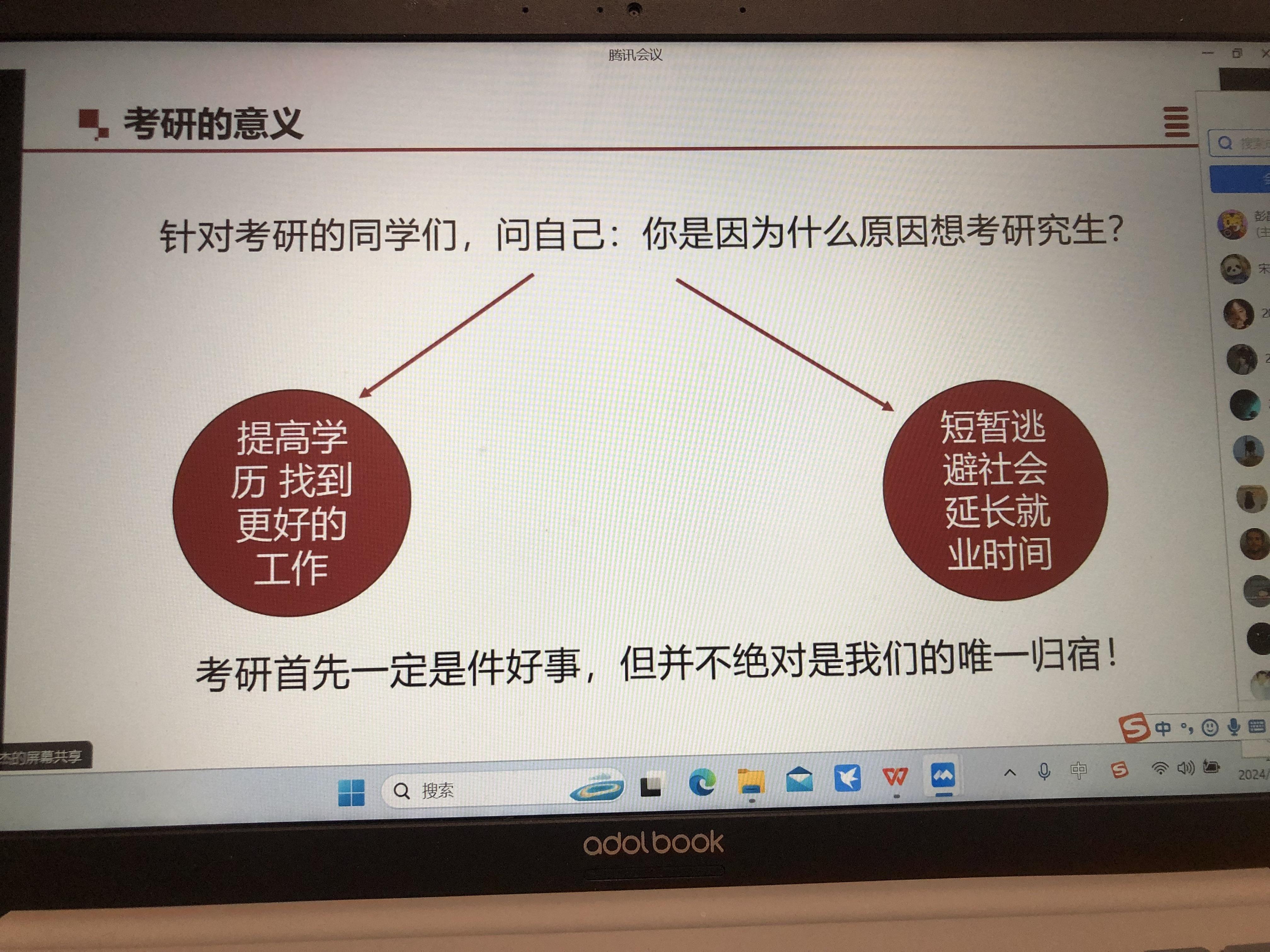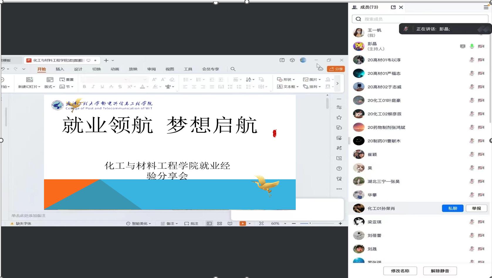 (通讯员:彭晶) 为帮助2024届毕业生树立正确的就业观,掌握求职技巧,4月27日晚,304永利集团依托线上平台举办2024届求职就业经验分享会化材学院院长向丽、毕业班班主任及2024届未就业毕业生参加会议。会议由党总支副书记彭晶主持。![]() ![]() 会议伊始,副书记彭晶作2024年化材药就业形势分析报告。从认清形势,认识自己和主动作为3个方面,结合学院就业工作举措,希望同学理性分析个人能力边界,消除认知偏差,积极将个人规划与行业发展结合起来,找到心仪的工作。 ![]() 三宁公司人力资源部张昊副主任以hr视角,从招聘全过程和大数据为基础,分析解读了企业用人要求,对应届毕业生求职心态和如何完善职业技能方面提出建议。 ![]() 四名毕业生校友和20级已找到心仪工作的应届毕业生结合自身求职就业情况 以自身为例,向大家详尽地介绍了找工作流程。从了解各单位招聘信息,参加各校双选会,投递简历,到筛选最优解,都体现“做计划比不做好,提前比临场好,现在比未来好”。指导了简历制作与结构化面试,并分享了他们所了解到的就业故事与就业现状。 ![]() 最后,化材学院院长向丽总结发言。向院长对目前的就业形势进行了全面分析,并对家长和同学们提出三点建议,第一,了解就业政策,把握就业形势,充分挖掘就业资源;第二,树立理性就业观,明确就业方向,做好规划;第三,保持终身学习的状态,实现自身价值。 大家积极踊跃地提出了许多问题,学长们也耐心详尽地做出解答。希望参会的同学们能够以此为契机,向优秀的学长学姐们学习宝贵的求职经验,明确自己的奋斗方向。 |