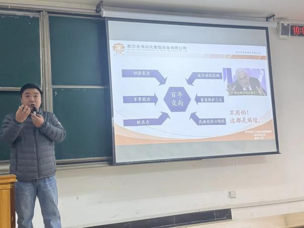 (通讯员:李诗哲 潘佳禾,摄影:矫越欣 郑维西)为帮助化学与材料专业学子把握新时代就业趋势、明确职业发展方向,2025年12月9日上午10:00,一场以“新时代大学生就业创业之思考”为主题的专题分享会在L1203成功举办。此次活动邀请了武汉东海石化重型装备有限公司副总经理李明凯作为主讲人,304永利集团副院长(主持工作)向丽、副院长蔡喆、学工办主任李诗哲参加此次活动,共同探讨就业形势、行业动向与个人成长路径,为化材学子注入前瞻视野与行动信心。